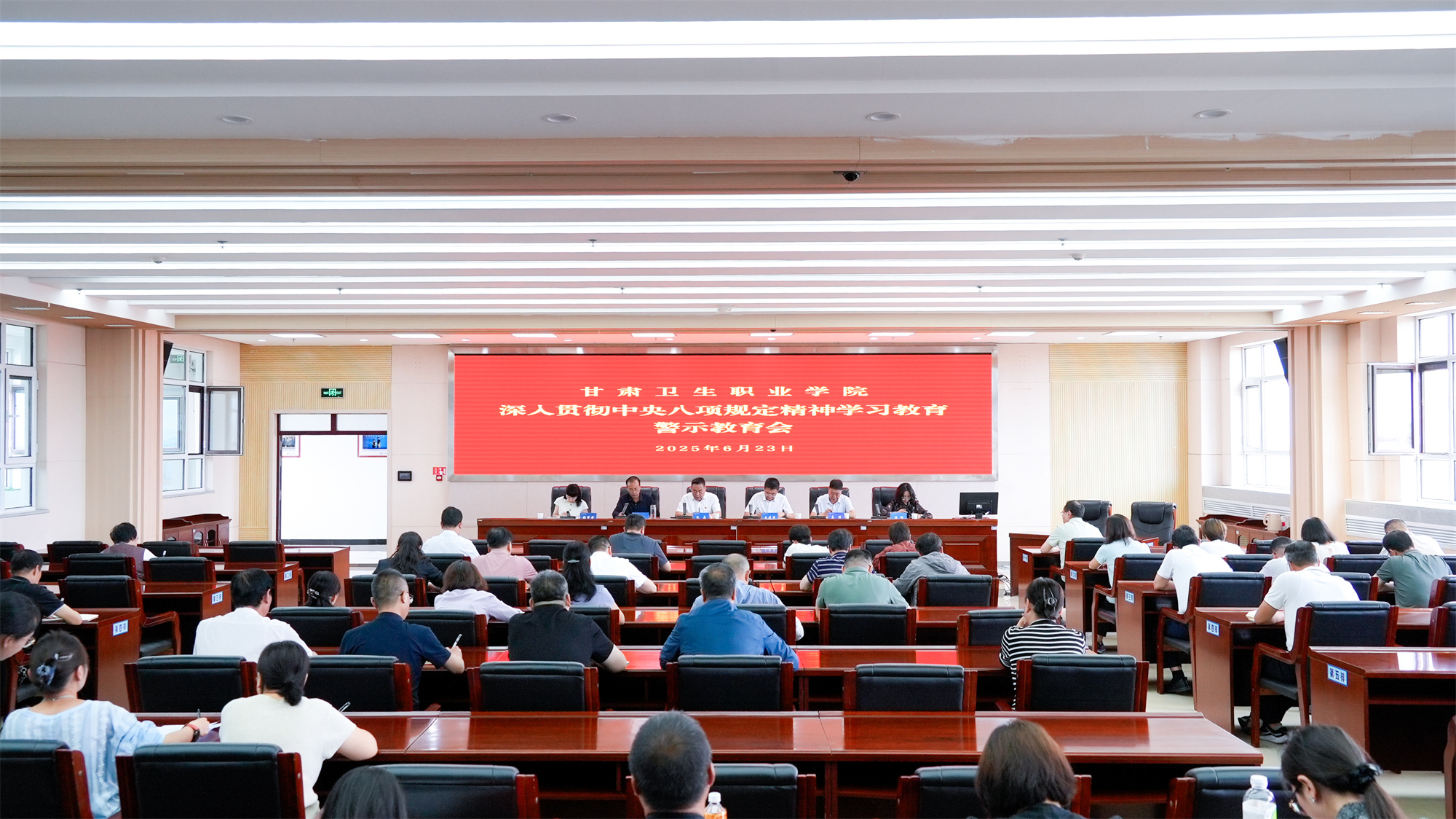 6月23日,学校召开深入贯彻中央八项规定精神学习教育警示教育会,传达学习省委教育工委、省教育厅党组有关会议精神,通报近年来查处的教育系统违反中央八项规定精神典型案例,集体观看警示教育片。党委书记包磊主持并讲话。