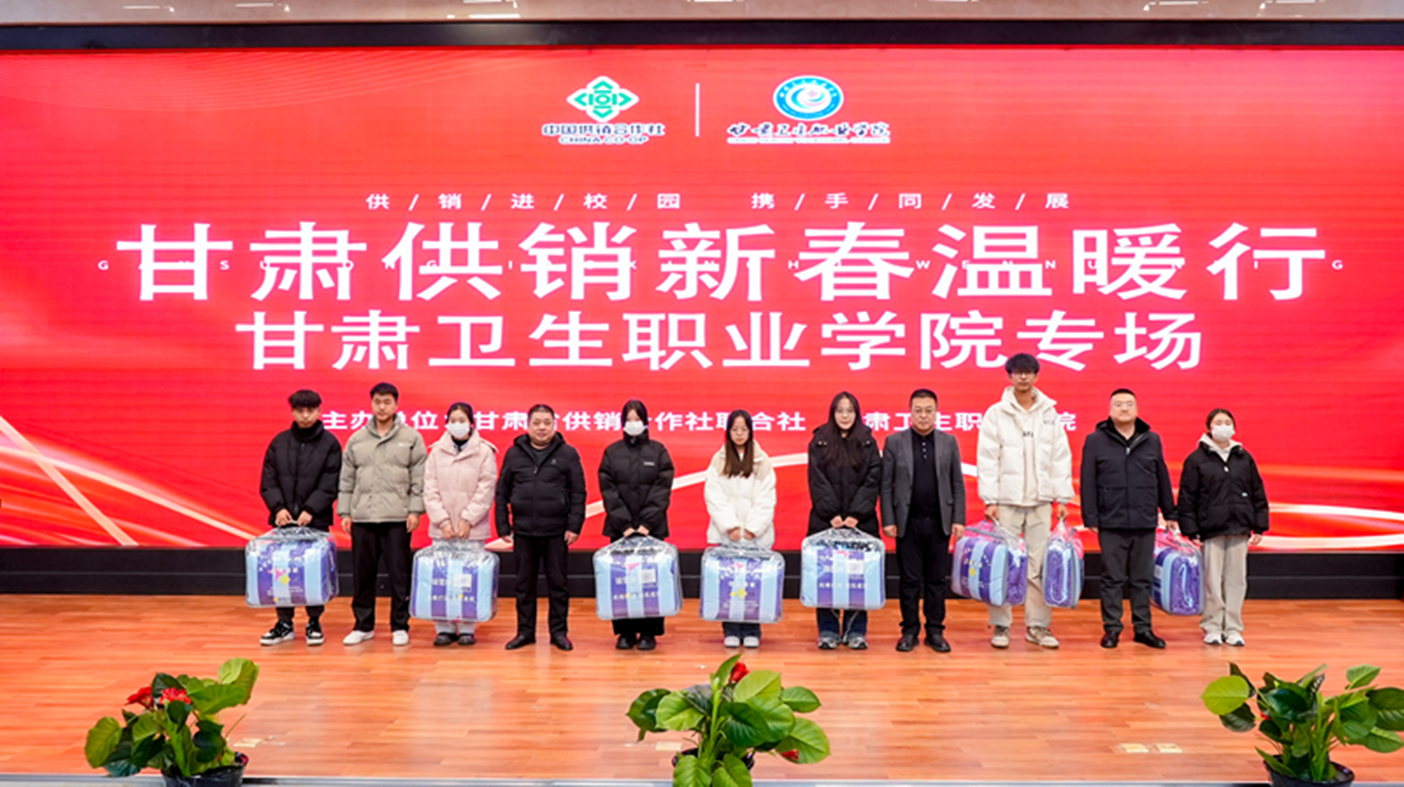 在元旦刚过,春节即将到来之际,我校联合甘肃省供销联社在学校笃学楼学术报告厅顺利举办了甘肃供销“新春温暖行”高校专场活动。