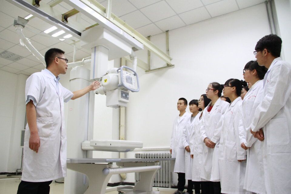 ♦ 张春雨老师带领同学们在DR实训室进行《X线摄影检查技术》实施教学 ♦