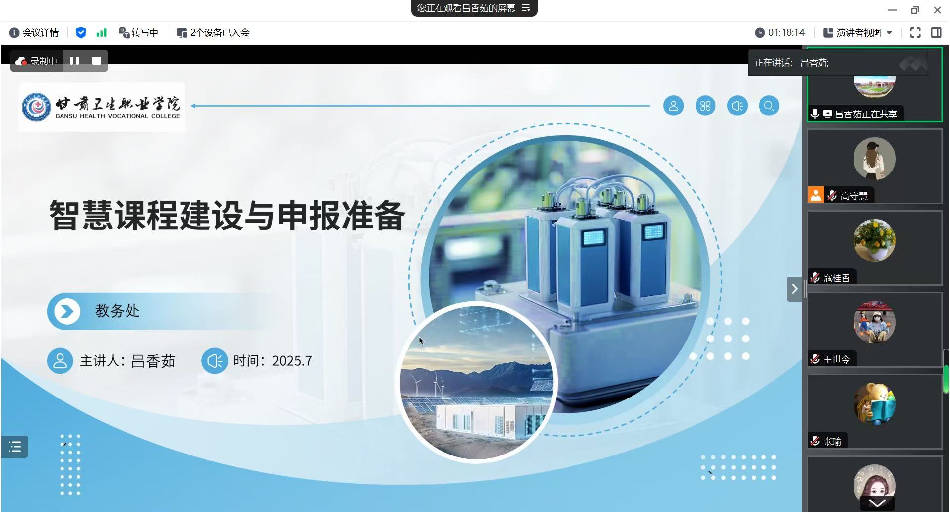 学校教务处负责人聚焦“智慧课程建设实务”,以国家级在线精品课程建设经验为基础从政策背景、内涵特征到建设路径展开分享。她还就智慧课程申报中的核心资源准备、特色亮点提炼等实务问题提供了操作性强的指导建议。