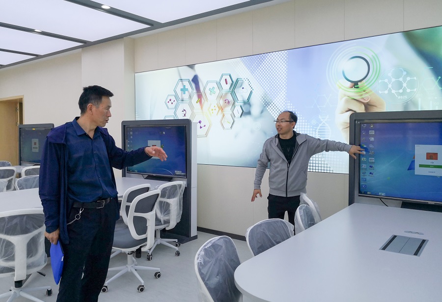 任书记一行主要调研和督导信息化四平台两中心的建设工期及后期使用培训情况。先参观了学校中心机房、创新数字医学中心和教师发展中心,随后在信息中心A209教室召开了调研会,信息中心主任杜学海就四平台两中心的建设及后期使用情况作了详细汇报。1.学校网络平台已于2017年9月建成并投入使用。2.中心云机房已于2018年3月建成并运行。3.学校官网已建成运行。4.校园电视台建设已完成将于9月底交付使用。5.微博微信建设完成并交付党委宣传部投入使用。6.Bb教学平台建设完成已上线一门课程(护理礼仪与美学)。7.考试平台已建成使用并完成2019届临床医学学生毕业考试及兰州新区卫生系统工作人员月考3次共计1100余人次。8.数字校园平台已完成人事、教务、办公、学工等基础信息录入。9.学校云盘已于今年5月建成并投入使。10. 创新数字医学中心和教师发展中心将于9月底交付使用。11.信息中心连续两年组织学校老师参加全省教学能力大赛取得优异成绩,今年冲出省赛取得一名参加国赛名额。12.制定完成《世界杯网络平台在线开放课程建设管理办法(试行)》。