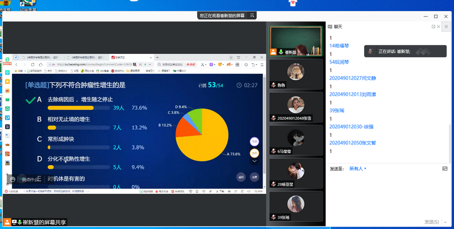 11月11日下午,基础医学院组织开展了一场别开生面的线上公开教学活动,崔新慧老师线上主讲了《病理学与病理生理学》中的“肿瘤概述”这一章节。