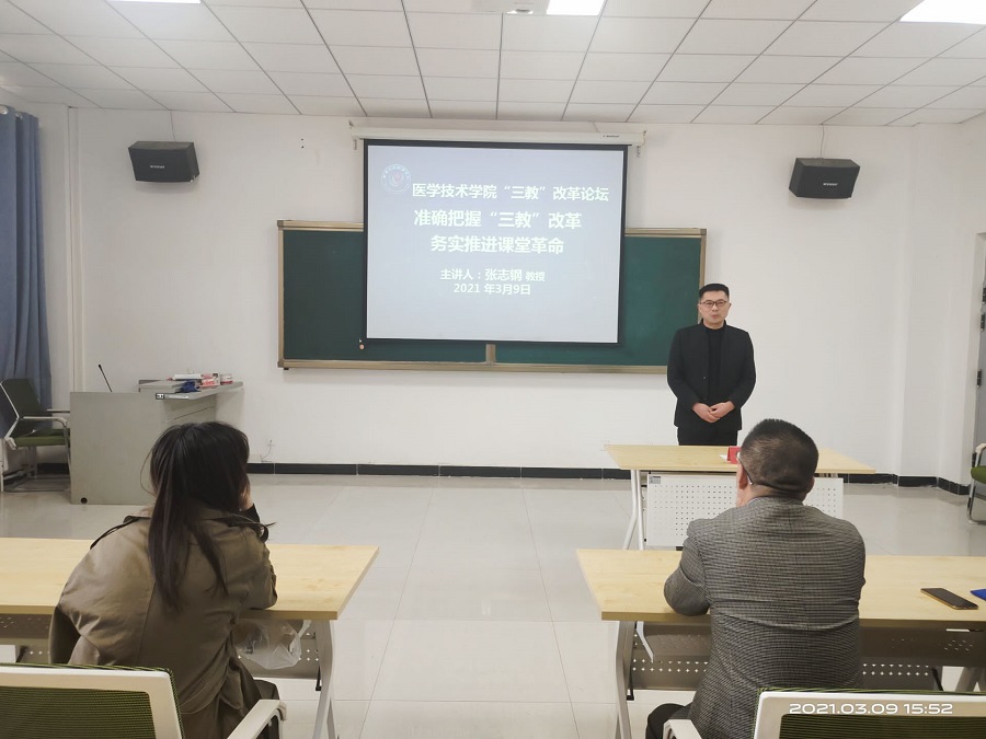 为积极贯彻落实《国家职业教育改革实施方案》,推进“双高”校建设,加快“提质培优”步伐。3月9日,医学技术学院举行了“三教”改革论坛第五讲,学院院长张志钢作了题为《准确把握“三教”改革,务实推进课堂革命》的讲座。学院全体教师参加了讲座,讲座由学院副院长张春雨主持。