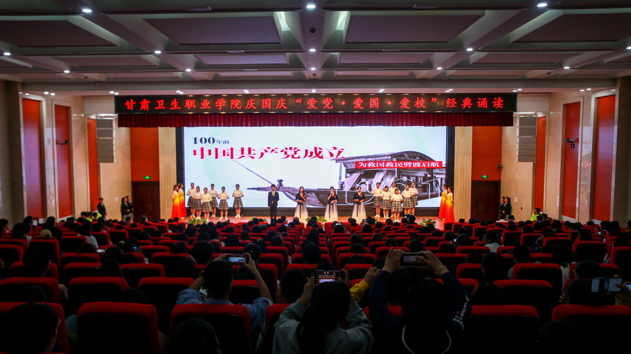为进一步引导我校学生唱响爱党、爱国、爱社会主义主旋律,夯实立德树人的坚实基础,在喜迎中华人民共和国成立72周年之际,9月29日晚,由校团委、学工部主办,临床护理学院、中医药学院、医学技术学院协办的“爱党 爱国 爱校”经典诵读比赛在一号教学楼学术报告厅举行。学校党办、校办、学工部、团委、临床护理学院、中医药学院、医学技术学院负责人出席活动并担任比赛评委,各二级学院辅导员、学生代表及参赛学生700余人参加活动。