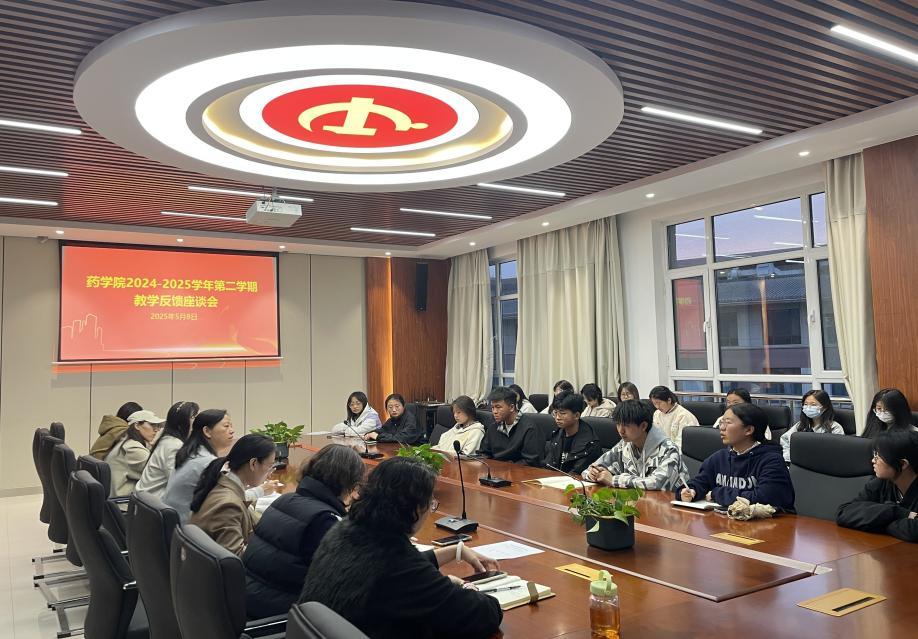 为进一步优化教风学风建设,精准把握学生学习动态与教学需求,5月8日,药学院组织召开2024-2025学年第二学期在校班级学生教学反馈座谈会。本次会议由副院长主持,院长、各教研室主任、教科研办公室全体工作人员及各班级学习委员齐聚一堂,共话教学相长新路径。