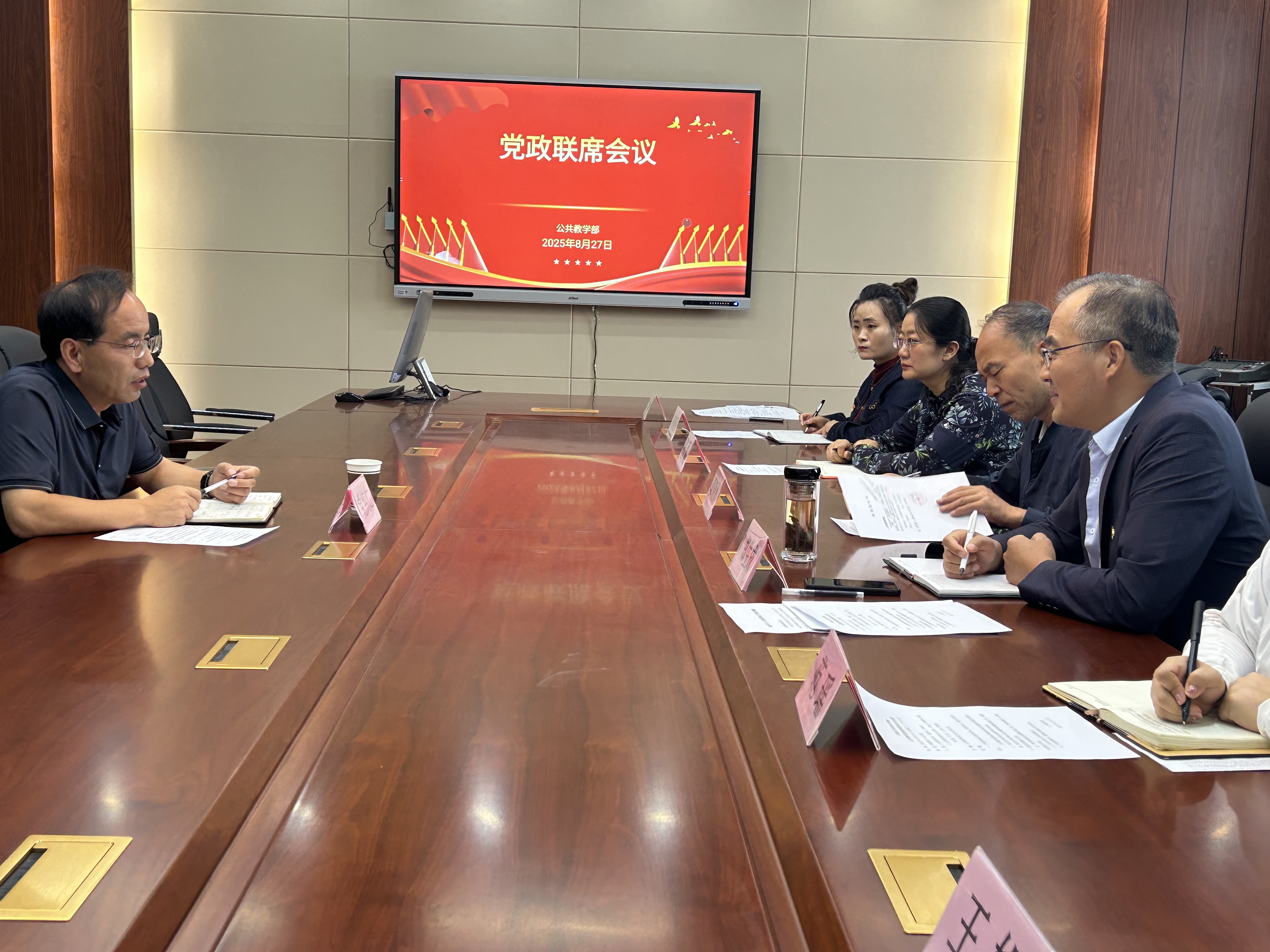 8月27日,公共教学部在514党员活动室召开了党政联席扩大会议,校党委委员、副院长党纯仁出席会议并指导工作,部门党政班子成员参加。会议由党总支书记郑生成主持。