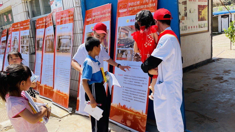 本次社会实践活动,主要从党史学习、理论宣讲、国情观察、乡村振兴、爱心医疗、推普宣传六个方面开展,实践团队30余名师生首先抵达崇信县铜城村,铜城村党委副书记带领班子成员参加此次活动。实践团队志愿者们向当地村民介绍宣讲党史宣传教育展板、和前来观看展板的乡亲们共同学习党的一大到十九大的重要内容,通过宣讲,让党的历史“飞入寻常百姓家”,使乡亲们更加深入的了解到中国共产党的艰苦奋斗历史,从党的百年光辉历史中汲取奋进力量。志愿者还在活动广场为村民和中小学生献出精彩的文艺节目,同学们引导在场人员高唱红色歌曲,表达听党话、跟党走、感党恩的决心,鼓励孩子们刻苦努力、勤奋学习,学有所成,贡献社会。志愿者为在场孩子们赠送了学习用品,向在场群众宣传国家通用语言文字政策和乡村振兴战略相关宣传推广活动,孩子们纷纷表示感谢世界杯网络平台的领导和老师,一定不辜负大家的期望,好好学习,争取早日成才。