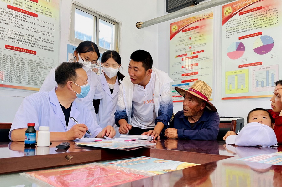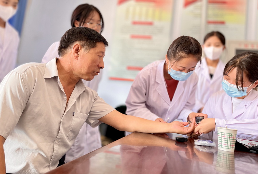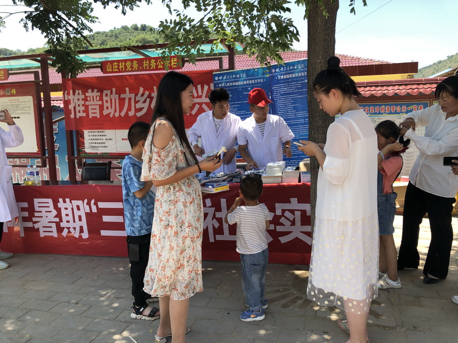 此外同学们还发挥所学专长,和校医院老师一起为乡亲们量血压、测血糖,协助校医院李世昌老师为村民义诊,大家一丝不苟、专心致志,将自己在学校所学知识用于实践,助力村民健康体魄。随后实践队成员分别赴华池县山庄村、华池县南湾村、南梁镇高台村开展了上述专项社会实践活动。