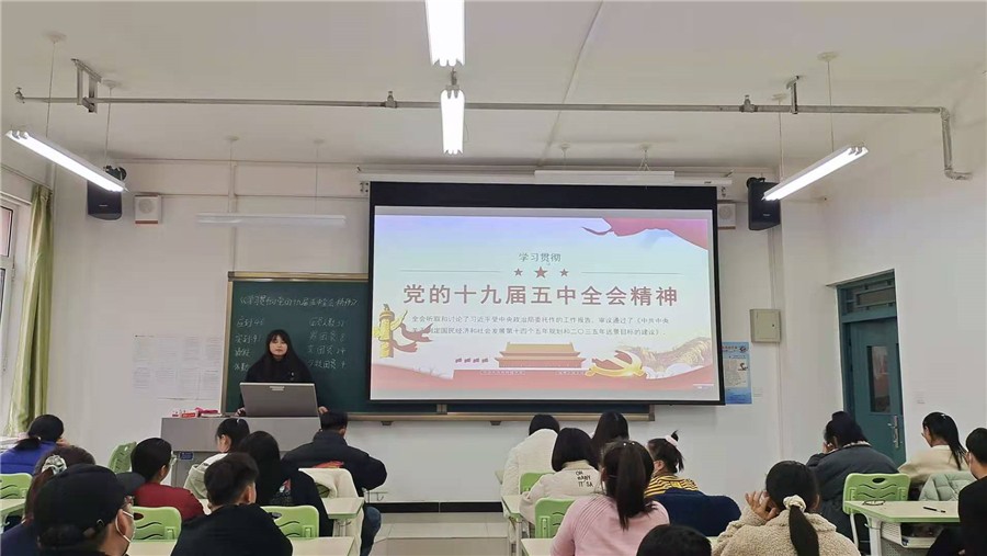 为深入学习党的十九届五中全会精神,增强“四个意识”、坚定“四个自信”,根据校党委部署,11月19日下午,校团委组织临床护理学院、中医药学院、医学技术学院各团支部开展了学习党的十九届五中全会精神主题团课活动。