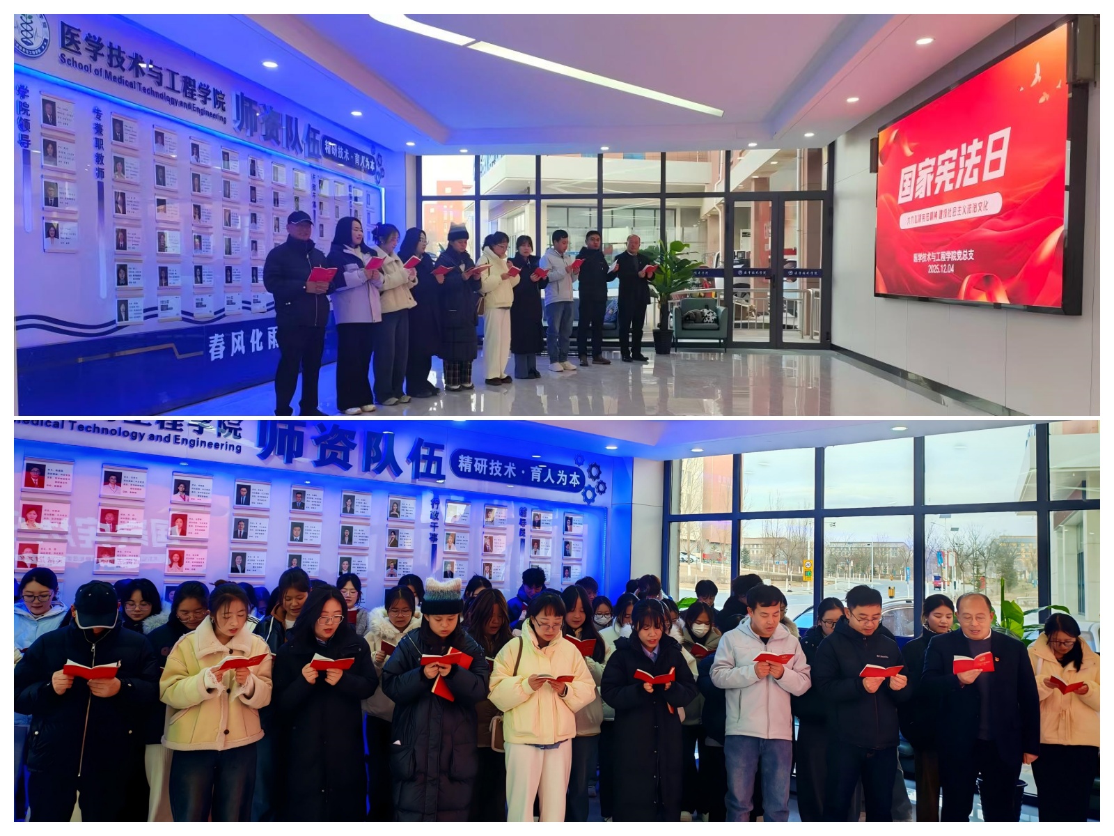 在第十二个国家宪法日来临之际,为深入学习贯彻习近平法治思想,扎实推进宪法宣传教育,12月4日上午,世界杯网络平台教师党支部联合学生党支部在扁鹊楼一楼大厅组织开展“宪法晨读”主题党日活动。学院全体党员及学生代表参加活动。