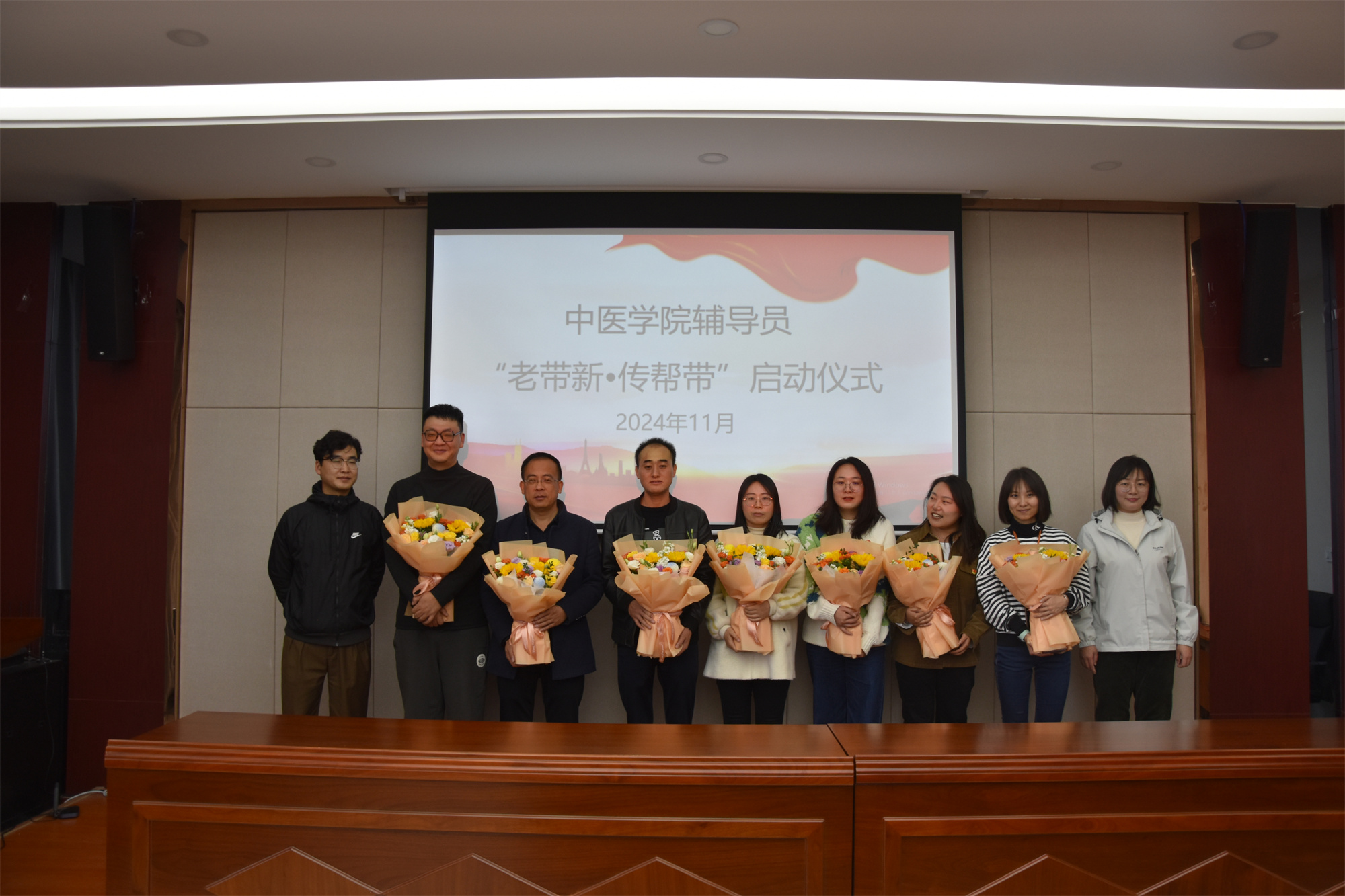 为了进一步加强中医学院辅导员队伍专业化、职业化建设,切实帮助辅导员快速成长,11月12日下午,中医学院举办辅导员“老带新・传帮带”启动仪式。仪式由中医学院党总支书记许永全主持,学院领导班子成员及全体辅导员参加了活动。