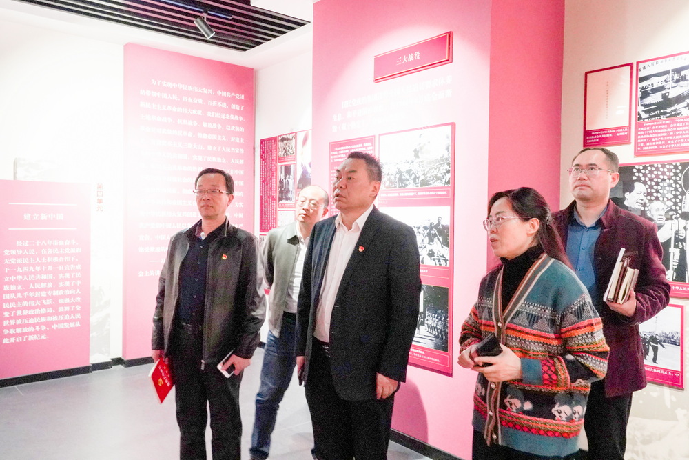 会后,包磊一行实地察看了马克思主义学院思想政治红色文化教育展馆、沉浸式虚拟仿真思政数字中心、红色文化长廊等场所。