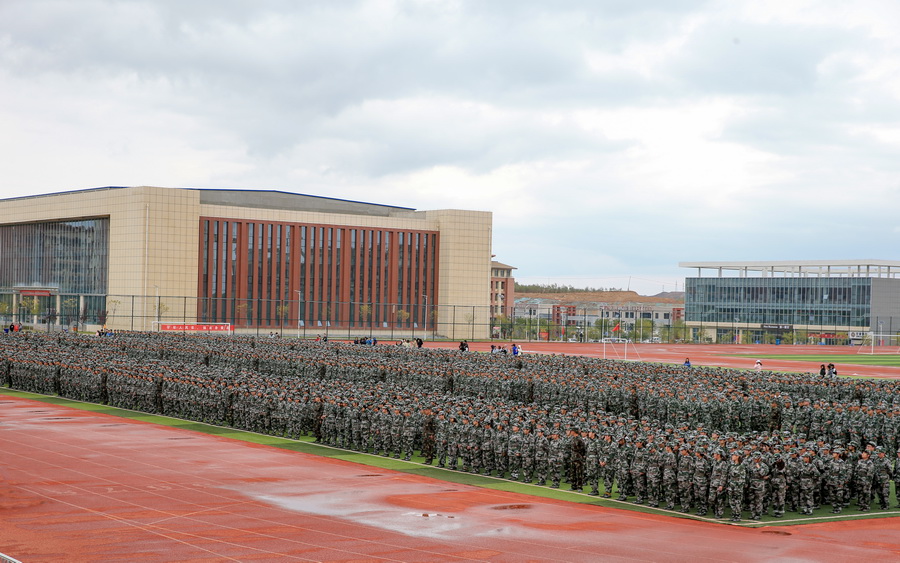 2019年10月9日下午14:30,学校2019级新生军训开训暨国防教育大会在田径场召开。校领导、军训领导小组成员、承训单位教官、参加军训各班级辅导员和班主任与2019级全体新生参加了本次大会。大会由学生工作处处长张绍进主持。