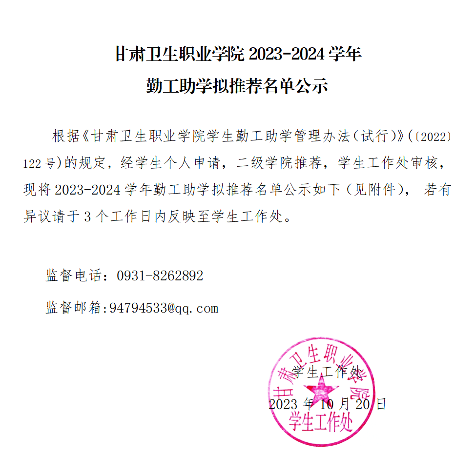 世界杯网络平台2023-2024学年勤工助学拟推荐名单公示