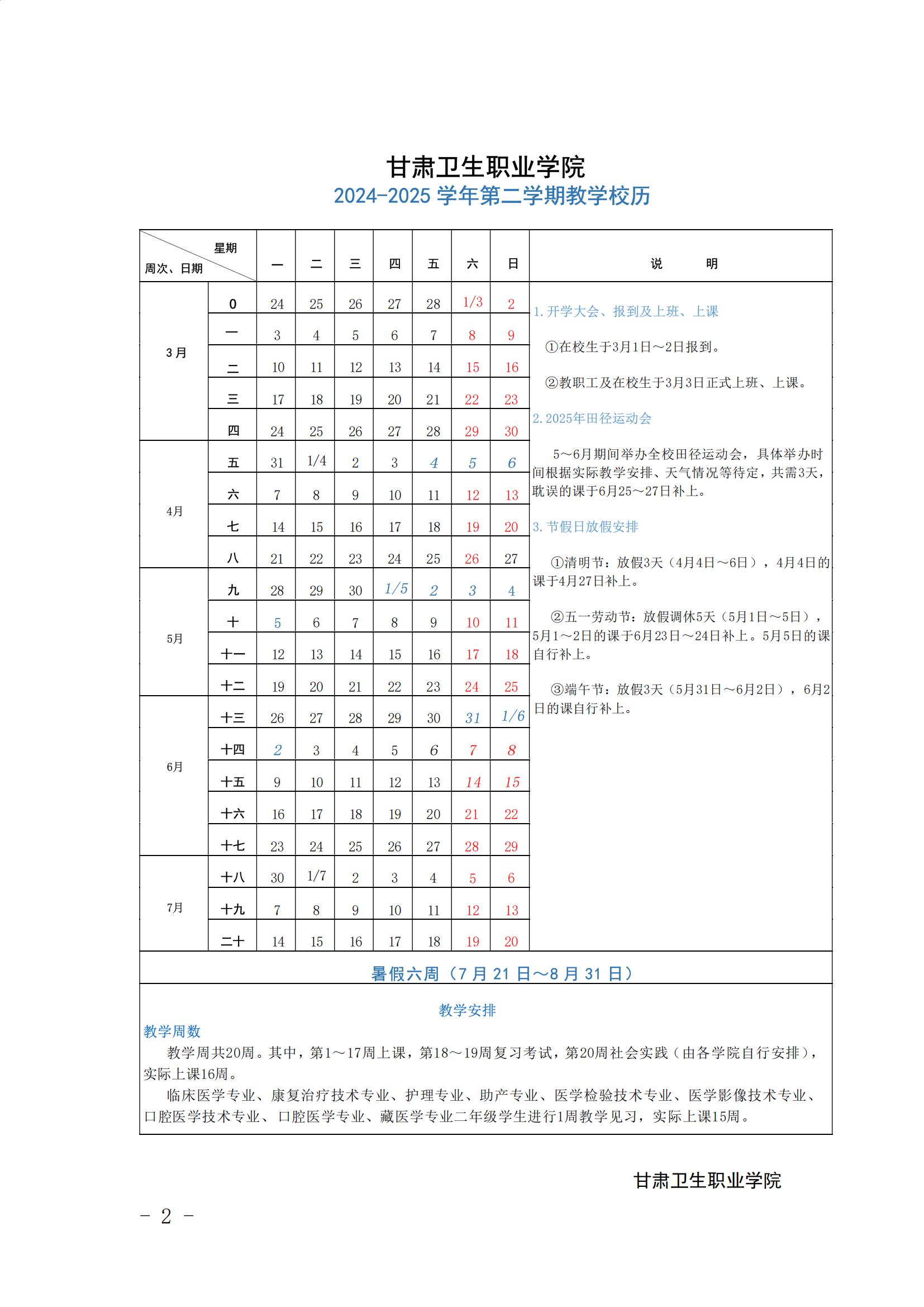 世界杯在线信誉网址2024-2025学年第二学期教学校历