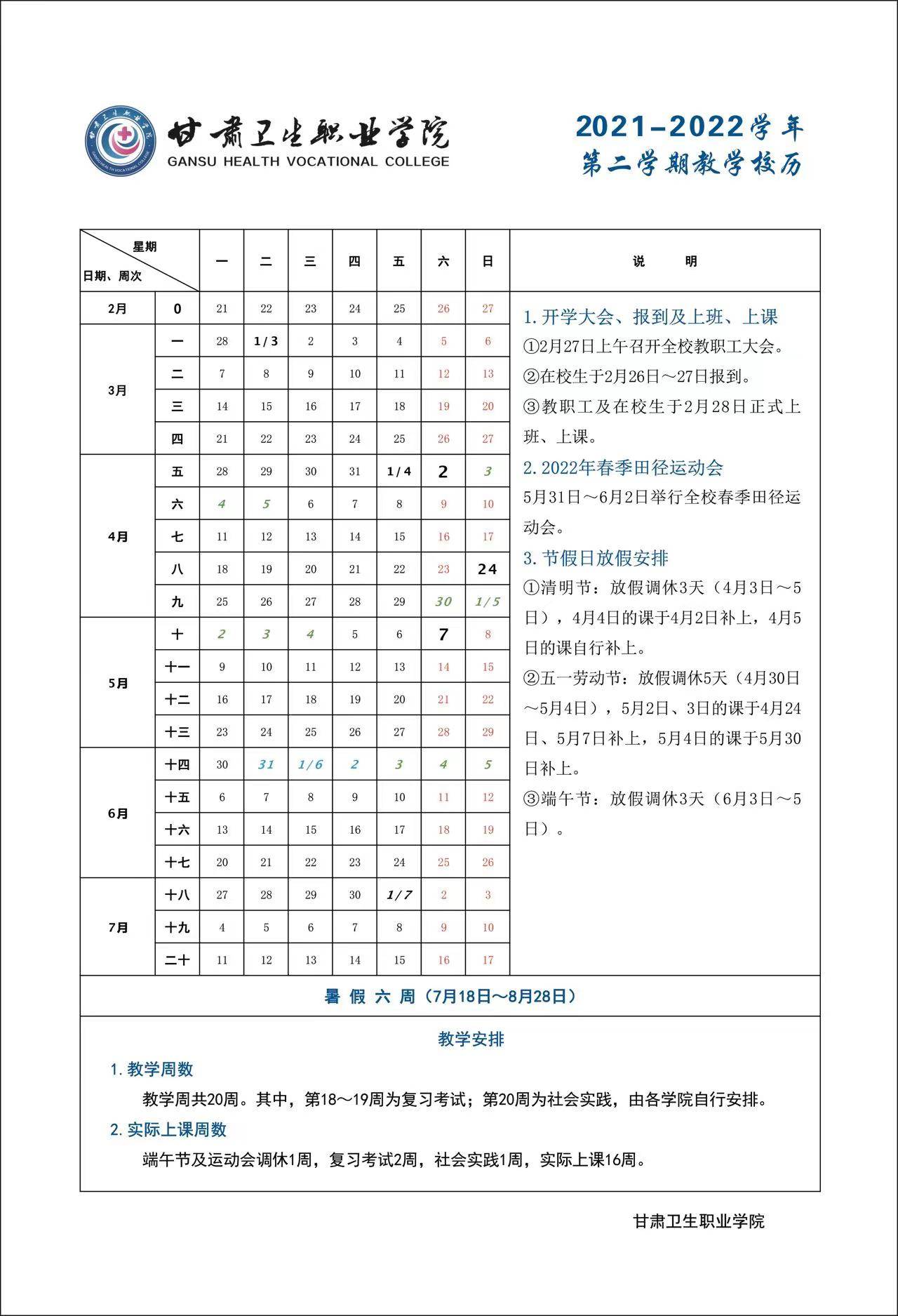 世界杯在线信誉网址2021-2022学年第二学期教学校历