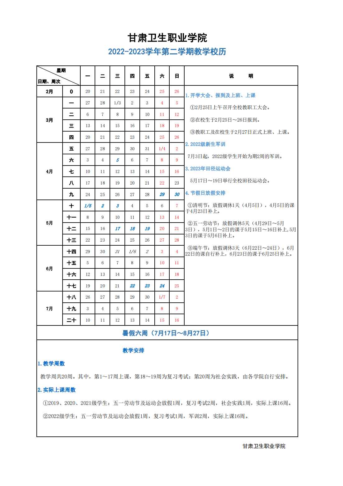 世界杯在线信誉网址 2022-2023学年第二学期教学校历