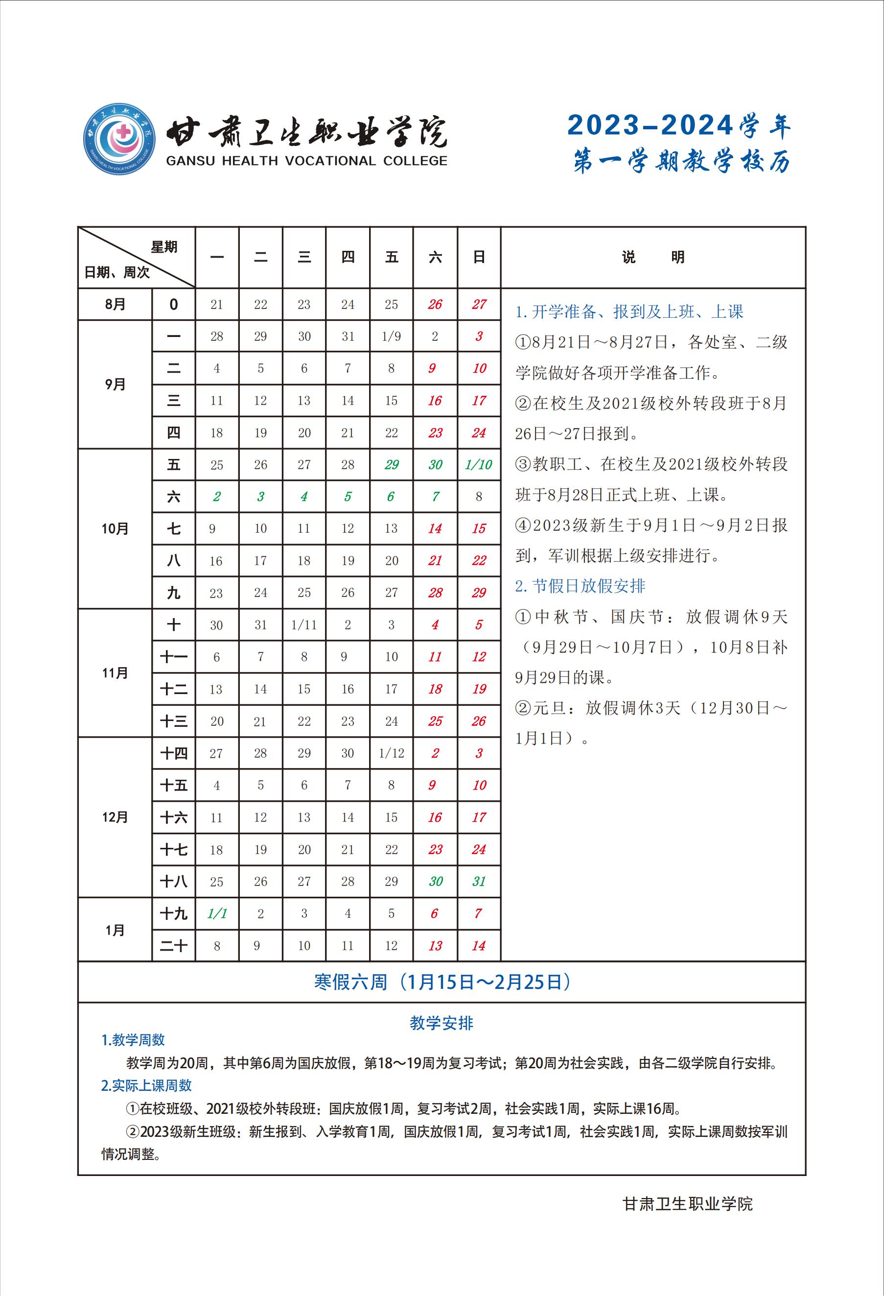 世界杯在线信誉网址2023-2024学年第一学期教学校历