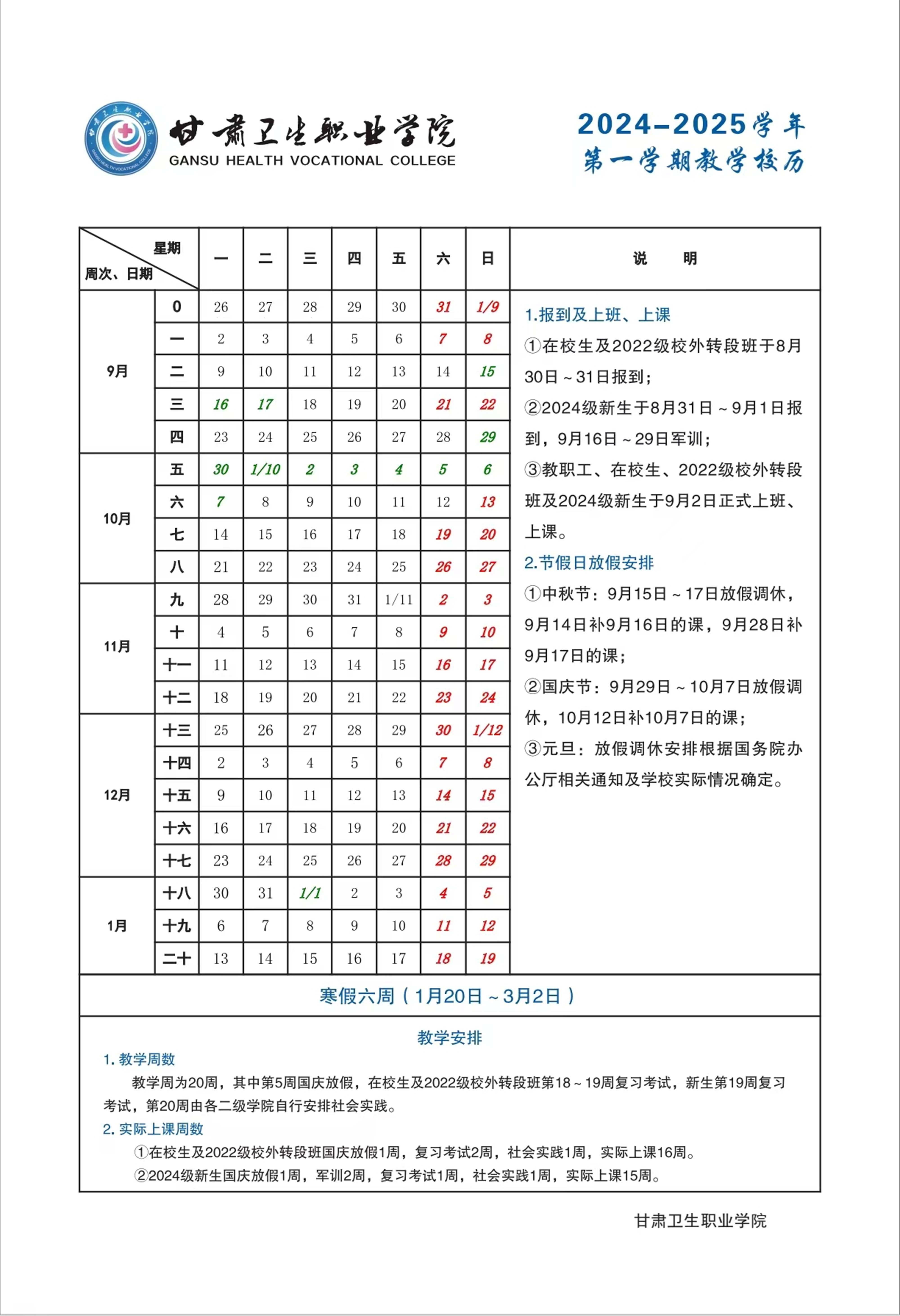 世界杯在线信誉网址2024-2025学年第一学期教学校历